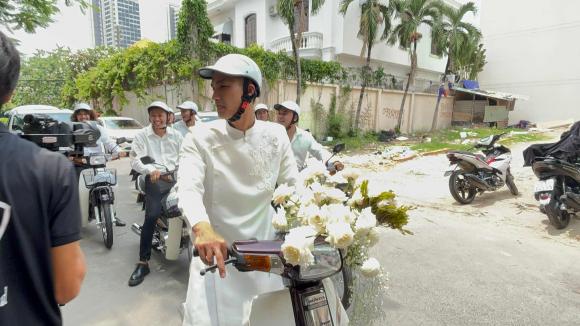 Bởi đây là phương tiện đi lại khi còn khó khăn lập nghiệp để làm nên cơ ngơi như hôm nay. Anh chàng còn đảm nhận luôn vai trò MC để giới thiệu lễ vật mang đến nhà gái.
