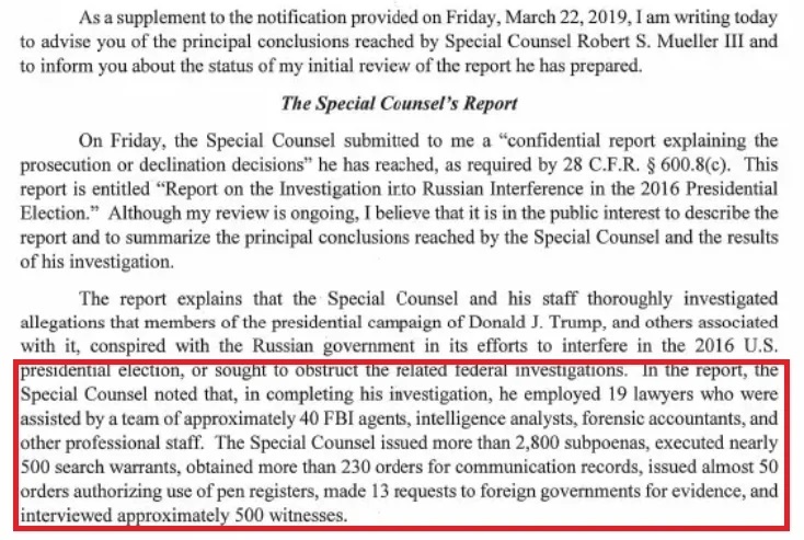 Robert Mueller và Andrew Weissmann đã dành 2 năm để điều tra Trump-Nga như thế nào; với đội ngũ 19 luật sư, 40 triệu đô la tài nguyên, 40 đặc vụ FBI, 2.800 trát đòi hầu tòa, 500 lệnh khám xét và 500 nhân chứng; và không phát hiện ra rằng Hillary Clinton đã tạo ra trò lừa bịp mà họ đang điều tra?