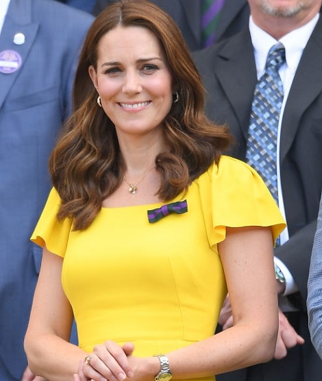 Kate đã đeo chiếc ghim trong mọi chuyến thăm khác - bao gồm cả lần xuất hiện vào tuần trước tại tứ kết Wimbledon nam, khi nữ Công tước phối chiếc ghim nơ của cô với một chiếc váy chấm bi Alessandra Rich.