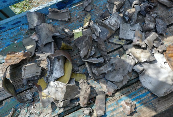 Mảnh vỡ Nga tuyên bố là của pháo HIMARS tại trại tù binh Yelenovka, miền đông Ukraine. Ảnh: Reuters.