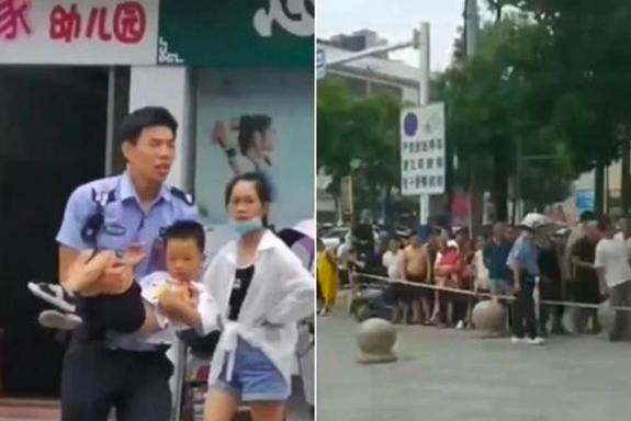 Trong đoạn video được đăng tải bởi tờ Bắc Kinh Nhật báo, có thể thấy một sĩ quan cảnh sát đang bế một em nhỏ lên xe cấp cứu. Độ tuổi của các nạn nhân chưa được công bố.