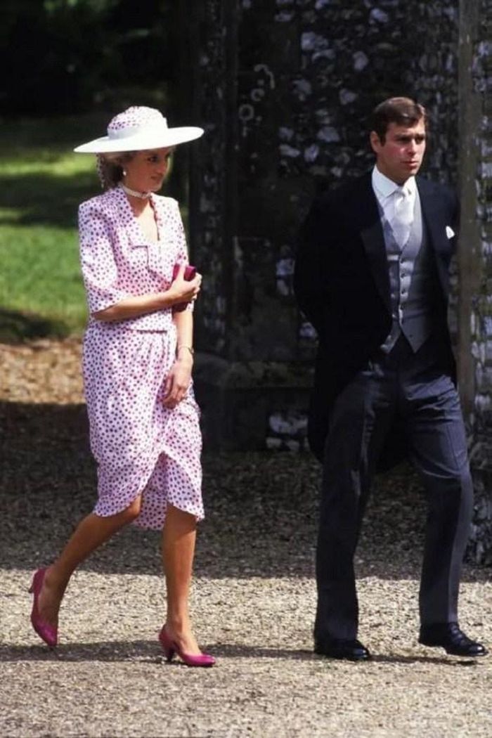 Đi dự đám cưới, Công nương Diana thường chọn trang phục có họa tiết chấm bi cổ điển, kiểu dáng kín đáo nhưng vẫn nổi bật vừa đủ.