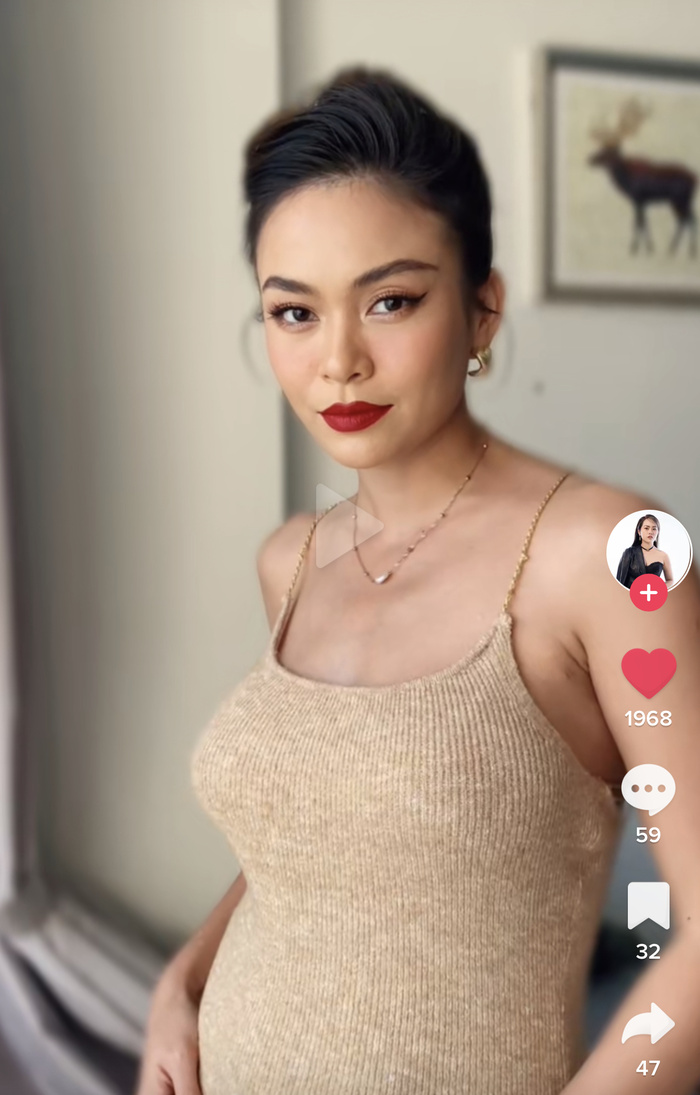 Chiếc đầm ôm sát cơ thể làm lộ ra dấu hiệu như thể đang mang thai của Mâu Thuỷ, hành động tay của siêu mẫu cũng như thói quen của một người sắp làm mẹ.