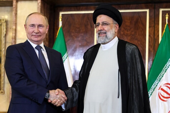 Tổng thống Iran Ebrahim Raisi đón Tổng thống Nga Vladimir Putin tại thủ đô Tehran ngày 19/7. Ảnh: AP