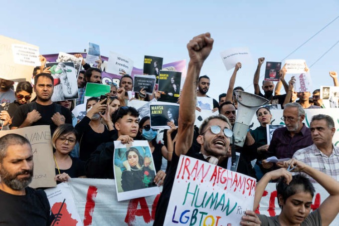 Vào buổi chiều hôm trước, khoảng 200 người tập trung ở Quảng trường Syntagma, trung tâm thành phố Athens để phản đối chính phủ Iran với cáo buộc trấn áp các cuộc biểu tình sau cái chết của Mahsa Amini. Người biểu tình hô khẩu hiệu hoặc cắt tóc để phản đối.
