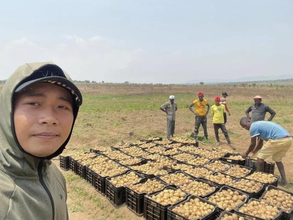Mới đây, chàng trai xứ Nghệ đã chia sẻ khoảnh khắc cùng bà con châu Phi thu hoạch khoai tây. Đăng ảnh, chàng YouTuber gốc Việt tự hào: "Mùa khô như thế này là tuyệt vời rồi. Khoai khoai toàn khoai".