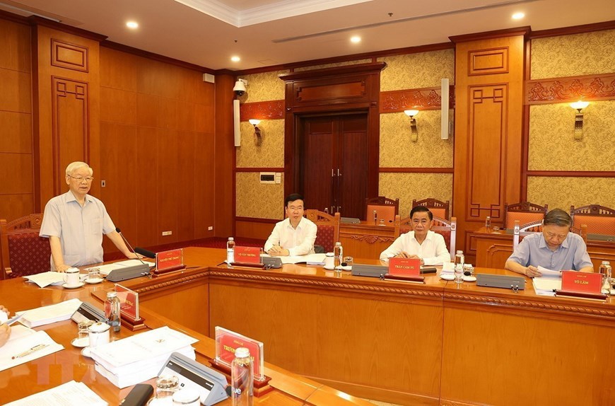 Tổng Bí thư Nguyễn Phú Trọng, Trưởng Ban Chỉ đạo Trung ương về phòng, chống tham nhũng, tiêu cực chủ trì phiên họp của Thường trực Ban Chỉ đạo. Ảnh TTXVN
