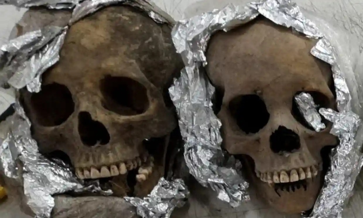 Các hộp sọ được bọc kín bằng giấy bạc. Ảnh: Reuters.