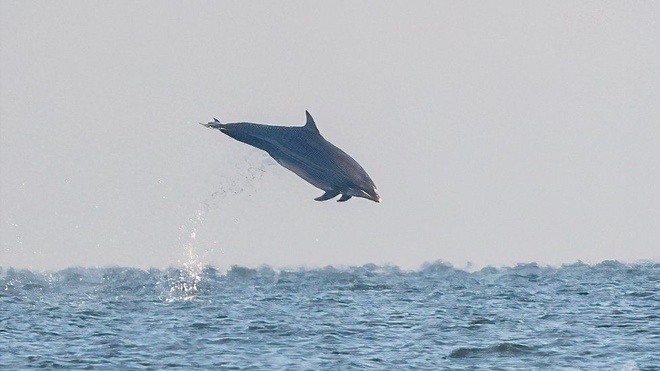 Con cá heo mũi chai nhảy lên cao tới 3 m trong không trung. Ảnh: BBC.