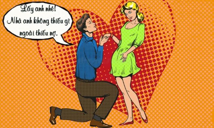 - Em lấy anh đi! Nhà anh không thiếu bất cứ thứ gì, chỉ thiếu nợ thôi.