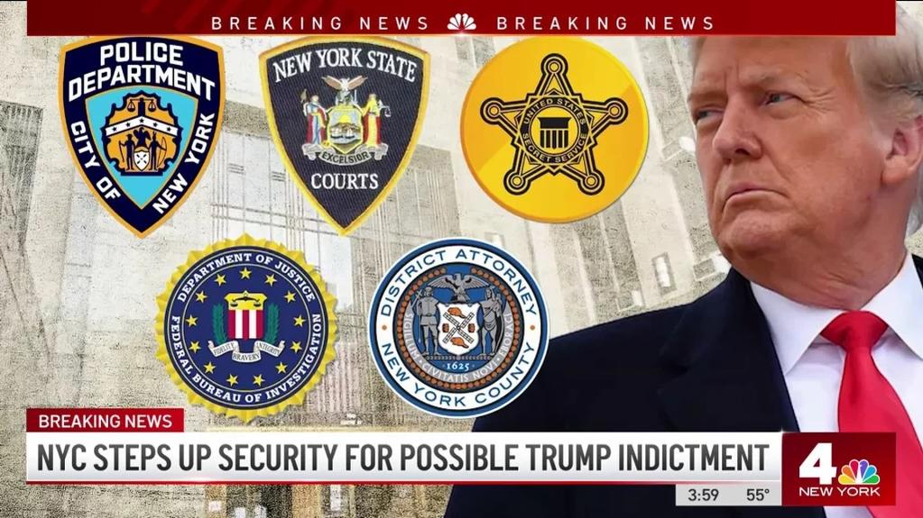 Ty Cảnh sát New York, Mật vụ Hoa Kỳ, Văn phòng Cảnh sát Toà án tiểu bang New York, Lực lượng phối hợp chống khủng bố của FBI, và Văn phòng Biện lý Quận Manhattan đang thực hiện đánh giá an ninh, và bàn đến những kế hoạch an ninh ngay tại và chung quanh Toà Hình sự Manhattan số 100 Centre Street, trong trường hợp cựu Tổng thống Hoa Kỳ bị truy tố hình sự liên quan đến khoản tiền bịt miệng chi trả cho cô đào phim khiêu dâm Stormy Daniels, và di chuyển đến New York để đối mặt với cáo trạng.