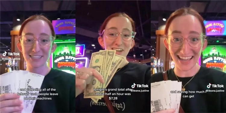 Cô Ileana Justine khoe trên TikTok, “Tôi không biết có ai chơi trò này khi họ ở sòng bạc hay không, nhưng trò chơi mà tôi thích là đi vòng quanh và thu thập tất cả số tiền mặt mà mọi người bỏ lại trên máy của họ xem tôi có thể nhận được bao nhiêu.”