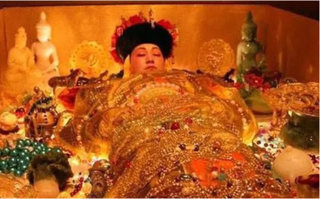 Sau khi Từ Hi thái hậu chết nhiều năm, Tôn Điện Anh dẫn quân lính tới mộ của bà để trộm vàng bạc châu báu. Tuy nhiên, khi mở quan tài, họ vô cùng kinh sợ bởi thi thể của Từ Hi thái hậu vẫn nguyên vẹn. Bà trông chỉ như đang ngủ. Điều này khiến những tay trộm mộ vô cùng sợ hãi.