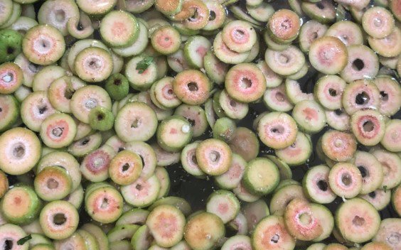 - Chuẩn bị thau nước sạch pha với giấm hoặc nước cốt chanh, cắt bỏ cuống sung, thái lát hoặc bổ làm đôi rồi ngâm. Bước này giúp sung trắng và không bị thâm đen.