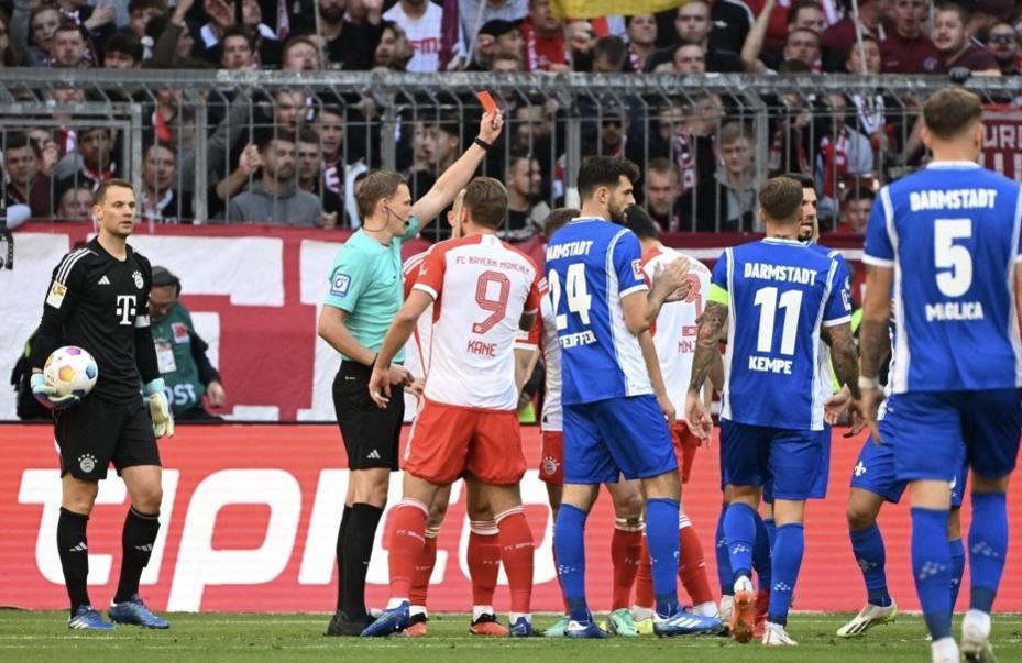 Tuy nhiên, diễn biến “điên rồ” đã xảy ra tại Allianz Arena khi đội khách Darmstadt có 2 cầu thủ bị truất quyền thi đấu ngay trong hiệp 1. Bayern Munich từ chỗ thiếu người trở thành được chơi hơn người.