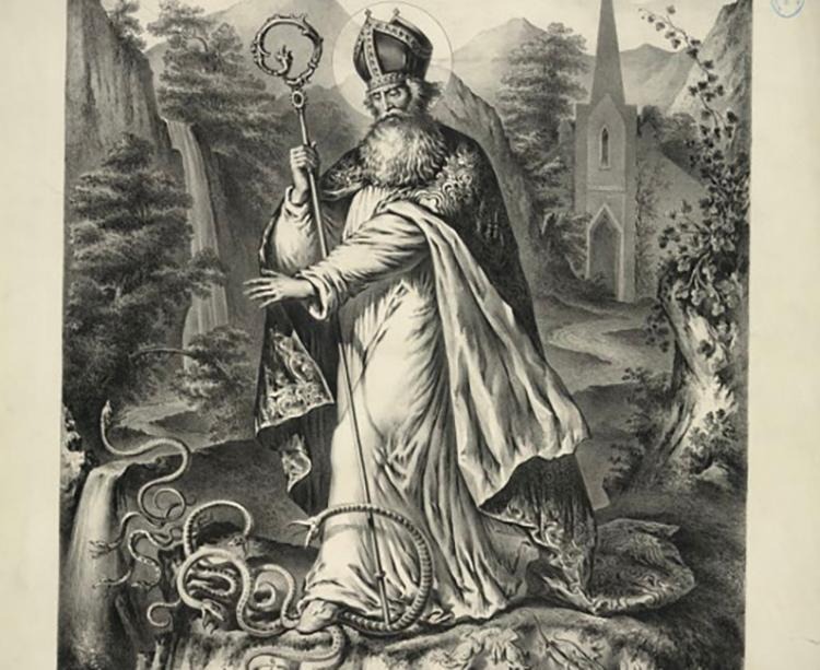 Bức vẽ mô tả truyền thuyết Thánh Patrick xua đuổi loài rắn trên Ireland.