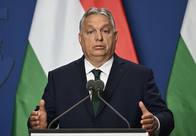 Thủ tướng Hungary Viktor Orban họp báo tại Budapest ngày 12/6. Ảnh: AFP