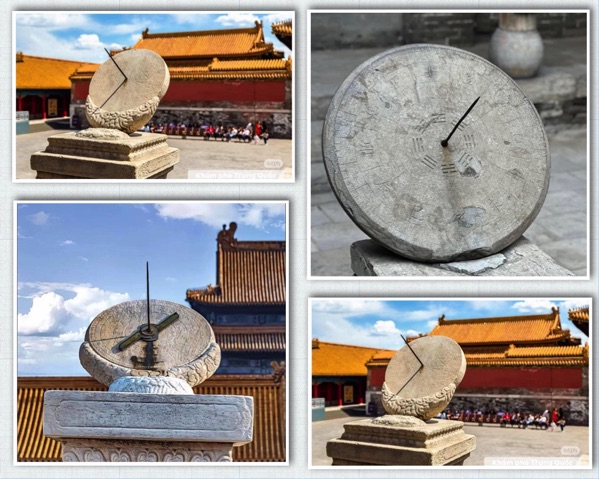 Đồng hồ mặt trời trong Tử Cấm Thành ở Bắc Kinh là đồng hồ mặt trời xích đạo, có bề mặt song song với đường xích đạo và kim của nó song song với trục trái đất. Mặt số được chia thành 12 giờ, mỗi giờ