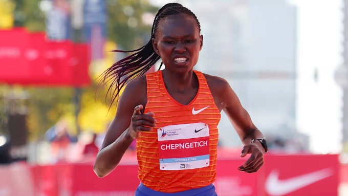 Sáng 13/10, marathon chứng kiến thời khắc lịch sử khi lần đầu tiên, một nữ VĐV hoàn thành quãng đường 42km với thời gian dưới 2 giờ 10 phút. Chepngetich, người từng vô địch Chicago Marathon năm 2021 và 2022, tái hiện chiến tích của cô với thông số 2 giờ 9 phút 57 giây, phá sâu kỷ lục cũ 2 giờ 11 phút 53 giây do Tigist Assefa (Ethiopia) lập tại Berlin Marathon 2023.