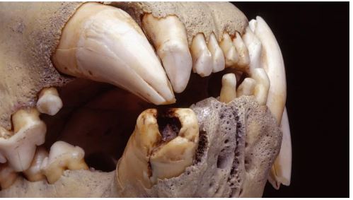 Những chiếc răng nứt và gãy của hai con sử tử ăn thịt người.