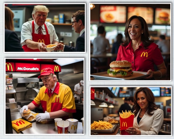 Trump, người có tình cảm sâu sắc với Golden Arches và các sản phẩm của nơi này đã được ghi chép lại đầy đủ, trong khi đó đã trở nên ám ảnh về việc làm của Harris tại đó. Trong các cuộc phỏng vấn và trên đường vận động tranh cử, ông thường xuyên cáo buộc Harris là đã bịa ra. Chuyến thăm nhà hàng của ông là nỗ lực mới nhất của ông nhằm gieo rắc sự nghi ngờ về lịch sử làm việc của đảng viên Dân chủ.