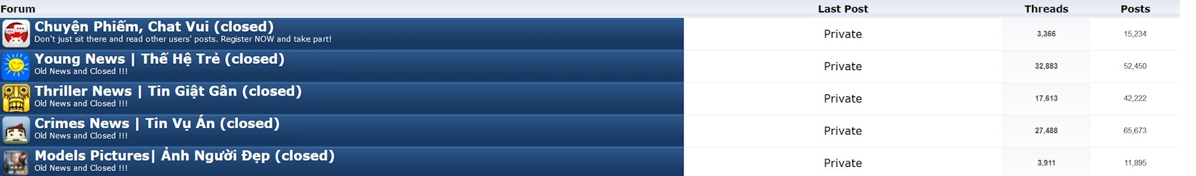 | Diễn Đàn Người Việt Hải Ngoại. Tự do ngôn luận, an toàn và uy tín. Vì một tương lai tươi đẹp cho các thế hệ Việt Nam hãy ghé thăm chúng tôi, hãy tâm sự với chúng tôi mỗi ngày, mỗi giờ và mỗi giây phút có thể. VietBF.Com Xin cám ơn các bạn, chúc tất cả các bạn vui vẻ và gặp nhiều may mắn. |