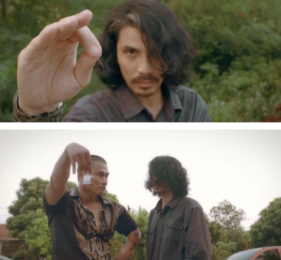 Cụ thể trong tập 28 của Độc đạo , Khương "liều" đảm nhận nhiệm vụ đưa con của Diễm chạy trốn khỏi sự truy đuổi đến từ ông trùm Quân "già" (Vĩnh Xương). Nhiệm vụ trở nên khó khăn hơn khi Khương phải đụng độ với Tiến "tỉa", đàn em đắc lực của tên trùm. Hai người đã có một màn giao tranh vô cùng căng thẳng và Khương "liều" dù nổi tiếng với thể lực và khả năng đánh nhau nhưng vẫn bị Tiến qua mặt. Đỉnh điểm là khi Tiến "tỉa" sử dụng kim châm để điểm huyệt đối thủ. Khi bị ngón đòn chí mạng, Khương "liều" đứng im bất động, không thể làm gì ngoài việc nhìn Tiến "tỉa" đem đứa bé đi.