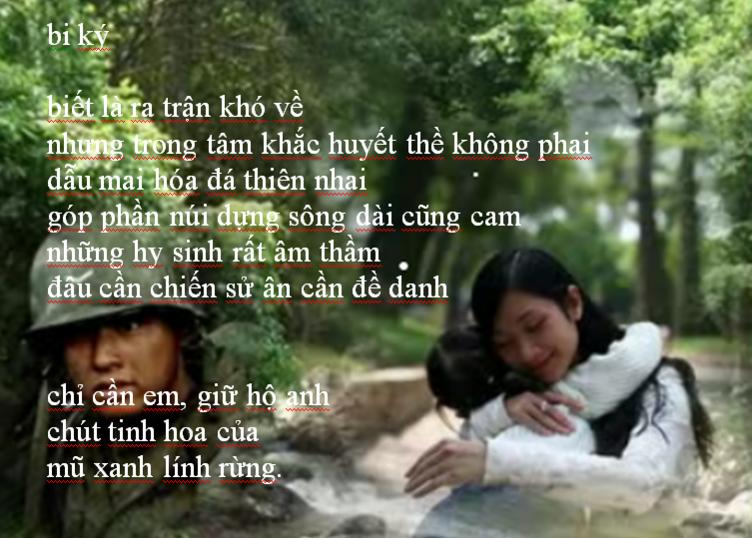 Chúng ta, những người Việt bỏ nước ra đi, không quên 58,200 thanh niên ưu tú của nước Mỹ đă bỏ ḿnh cho miền Nam, và xấp xỉ 1 triệu người lính VNCH,cao cả, đă hy sinh nằm xuống hay lưu lạc xứ người, dù nhiệm vụ chưa tṛn!...