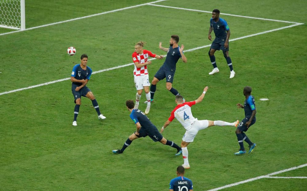 Hậu vệ Croatia phá bóng từ quả phạt góc, bóng trúng tay !!!