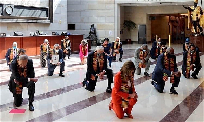 Viết nhảm đến đây, Đồ tôi nhớ đến các lãnh đạo Hạ Nghị Viện quỳ gối trước 1 nghi phạm tôị tiêu tiền giả…Xin các bạn đừng cười: Ai bảo Pelosi là già nhỉ, cái bộ váy mầu hồng nhạt, ôm lấy cái MÔNG TRÒN lẳn cuả mụ nổi bật lên trong cái thế quỳ rất …gợi dục…Nếu bác Hồ sống lại cũng phải…cứng bộ đồ lòng !
