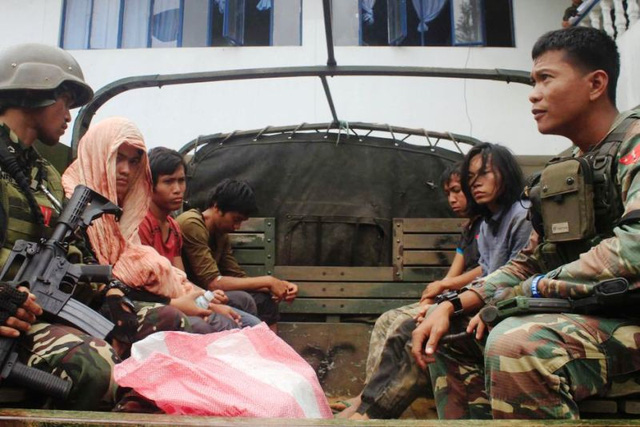 quân đội Philippines áp tải các thành viên của nhóm cực đoan Maute sau vụ cướp ngục tuần trước trên đảo Mindanao. Ảnh: AFP