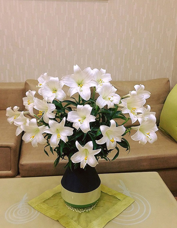 Ngoài trồng cây xanh thì cắm hoa ở huyền quan cũng là một gợi ý không tồi. Đẹp nhất là cắm hoa bách hợp – ngụ ý trăm năm hòa hợp. Loài hoa này không chỉ giúp tăng cường tình thân mà còn thúc giục đào hoa, bổ sung nhân duyên vận. Bày hoa bách hợp ở huyền quan thì người còn độc thân trong nhà sẽ gặp may mắn hơn trên đường tìm kiếm bạn đời, người đã có gia đình thì vợ chồng thuận lợi, tình cảm ngọt ngào.