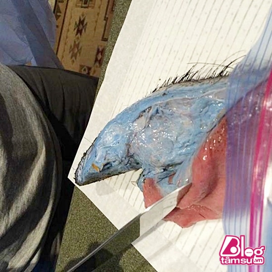 Cả đoàn người đi săn đang vui mừng hí hửng mổ thịt con lợn rừng vừa bắt được thì ngớ người ra khi phát hiện sự bất thường này. Bên trong bụng con lợn lại xuất hiện một màu xanh rất lạ kỳ không hiểu ra sao.
