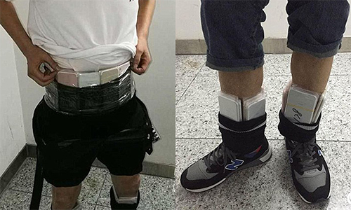 Hàng trăm chiếc iPhone 7 được quấn quanh người để nhập lậu vào Trung Quốc.