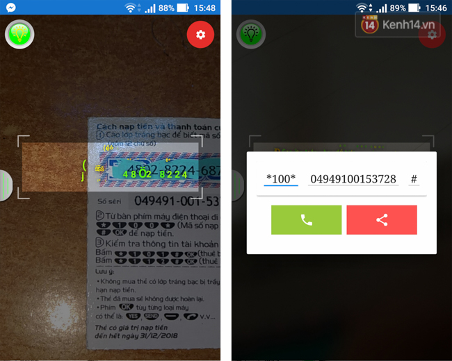 Được phát triển bởi một lập trình viên người Việt, ứng dụng Card Scan này giúp người dùng nạp thẻ bằng cách scan mã số rồi tự động nhập các con số vào và ghép vào cú pháp hoàn chỉnh với nhà mạng để nạp tiền cho bạn. Chẳng hạn như bình thường bạn phải nhập *101*mã số# thì nay các công đoạn này sẽ được Card Scan làm giúp. Việc còn lại là bạn chỉ cần nhấn vào nút Gọi để lệnh được thực hiện.