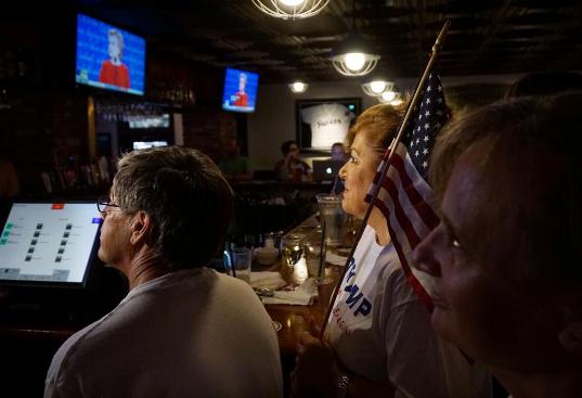 Cử tri theo dõi phiên tranh luận trực tiếp trên truyền hình tại quán McGregor's Bar and Grill ở San Diego. Ảnh: Reuters