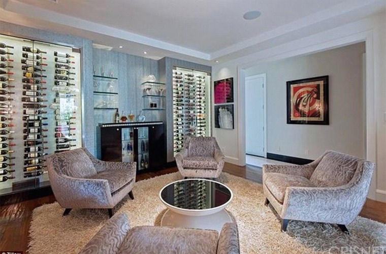 Phòng thử rượu có hai giá để rượu to và được thiết kế khiến mọi người cảm thấy thoải mái.