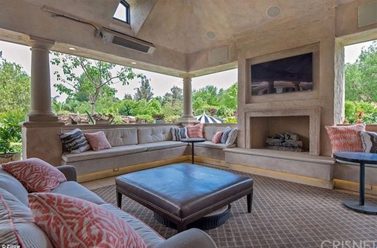 Phía ngoài vườn còn có một phòng khách ngoài trời được trang bị cả lò sưởi và tivi.