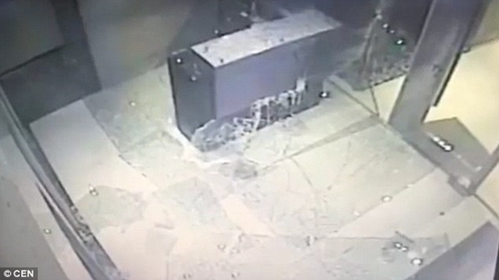 Vài giây sau, tấm kính lớn đã thực sự rơi xuống và vỡ tan thành vô số mảnh trước sự kinh hãi của rất nhiều người.
