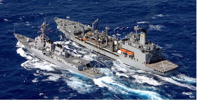 Tàu khu trục USS Decatur (trái) đang được tiếp liệu (Ảnh tư liệu: Wikipedia)