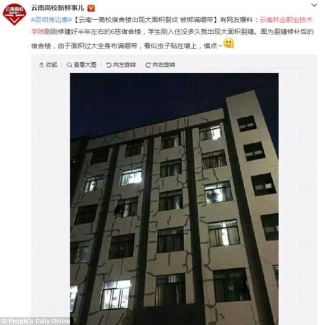 Old  Default Ký túc xá nứt toác khiến nhà trường TQ dán băng keo làm sinh viên kinh hồn bạt vía