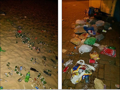 Bãi biển Coogee tràn ngập rác sau khi du khách ra về sau lễ hội khiêu vũ Giáng sinh
