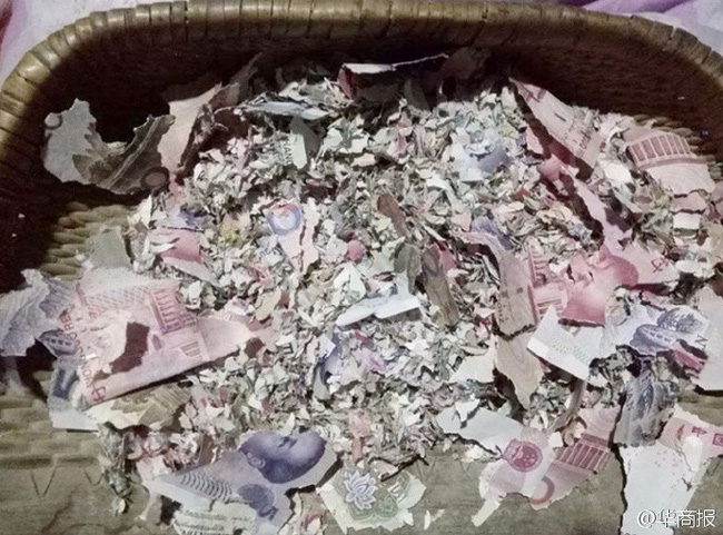 Một người phụ nữ tại Thiểm Tây, Trung Quốc đã bí mật mang số tiền dành dụm bao năm của mình giấu trong thùng thực phẩm dưới bếp. Bẵng đi một thời gian, đến gần đây bà có việc cần dùng nên đã lôi số tiền này ra thì sốc nặng khi tất cả chỉ còn là mớ giấy vụn. Nguyên nhân là do lũ chuột đã cắn nát số tiền đó thành những mảnh vụn nhỏ khiến bà vô cùng xót xa.