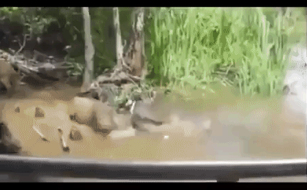 Nhanh 1 phút, chậm cả đời: Câu này không chỉ đúng với con người mà cả động vật nữa nha. Chỉ vì ham ăn và nhanh chân mà chú lợn rừng đã phải trả giá đắt. Sát thủ đầm lầy thì được một bữa no khi cả đàn lợn rừng ra sông kiếm ăn.