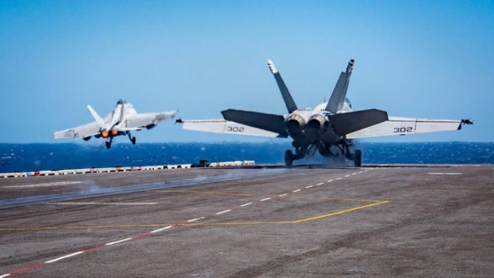 Kể từ khi có mặt tại khu vực biển Đông đến nay, tàu sân bay USS Carl Vinson đã tham gia một loạt các hoạt động huấn luyện cường độ cao với các phi vụ cất cánh máy bay chiến đấu liên tục cả ngày lẫn đêm. Nguồn ảnh: QQ.