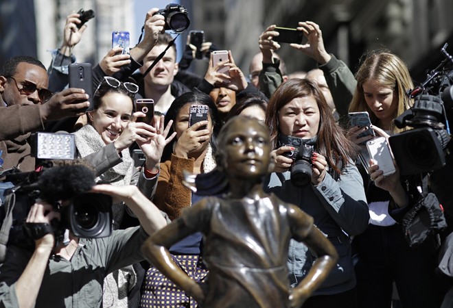 Sự xuất hiện đầy bất ngờ của một biểu tượng đại diện cho quyền lực phụ nữ ngay trên phố Wall vào sáng ngày 8/3 (giờ địa phương) khiến phái nữ Mỹ không khỏi bất ngờ và phấn khích.