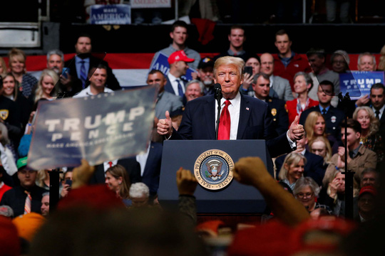 Tổng thống Donald Trump phát biểu trước những người ủng hộ ở TP Nashville, bang Tennessee ngày 15-3 Ảnh: REUTERS