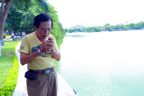 Nhạc sĩ Vinh Sử tản bộ ở hồ Gươm
