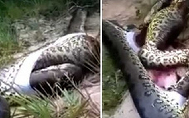 Nhưng tất cả đều không khỏi ngỡ ngàng khi phát hiện một con trăn khác với kích cỡ tương đương trong bụng con trăn này. Theo Daily Star, đoạn video này được ghi lại một địa điểm không xác định ở Nam Mỹ.