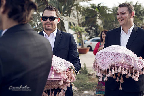 Nói về đội ngũ bê tráp của nhà trai, cô dâu cho biết, những chàng trai này đều là anh em, bạn thân của chú rể. Mọi người đều mong muốn có thể góp mặt chung vui trong ngày trọng đại của Daniel nên đã quyết định bê tráp theo đúng phong tục Việt Nam.